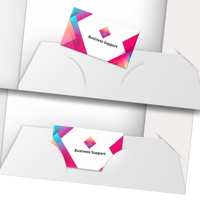 Gebruik presentatiemappen op maat om een professionele toets te geven aan elke zakelijke bijeenkomst. Papieren en uw visitekaartje worden netjes op hun plaats gehouden, zodat je georganiseerd en scherp blijft.
