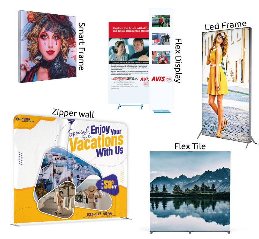 Heb je een goede Promo Wall nodig voor de aanstaande Beurs? Wij kunnen je helpen met je gepersonaliseerde Promo Wall, we hebben verschillende types (bijv. Zipper Wanden, Pop-up Wanden, Led Frame, Flex Tile of Display, Smart Frame), met of zonder verlichting, laat het ons weten waar je naar op zoek bent en wij kunnen je waarschijnlijk wel helpen.